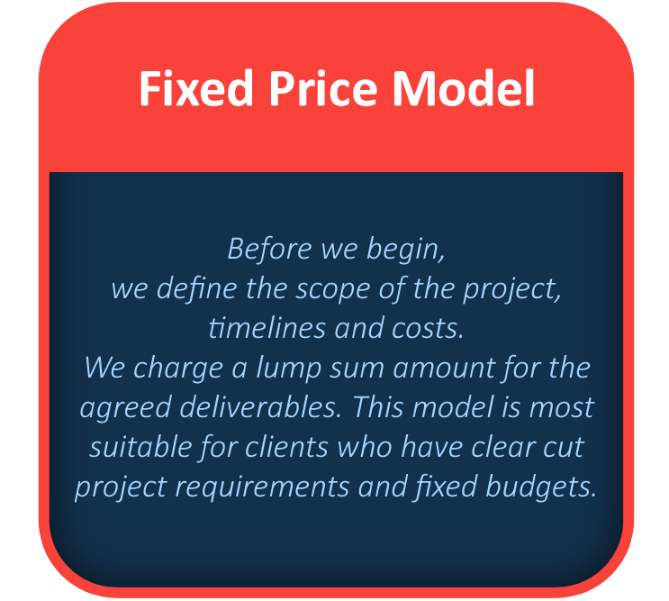Based upon your long term and short term goals and requirements, we offer flexible and economical engagement models to suit all budgets.